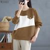 Autumn Women Grey Loose Fit Long Sleeve Tops with Contrast Collar College Fashion