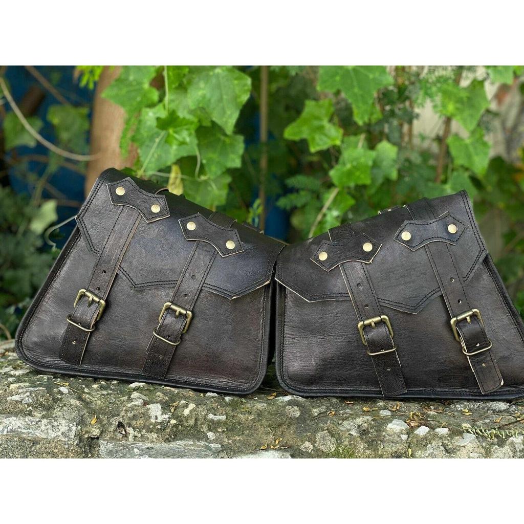 Bags Black Saddle Pouch Bags Tool Side Luggage Leather Motorcycle Combo Pair 2