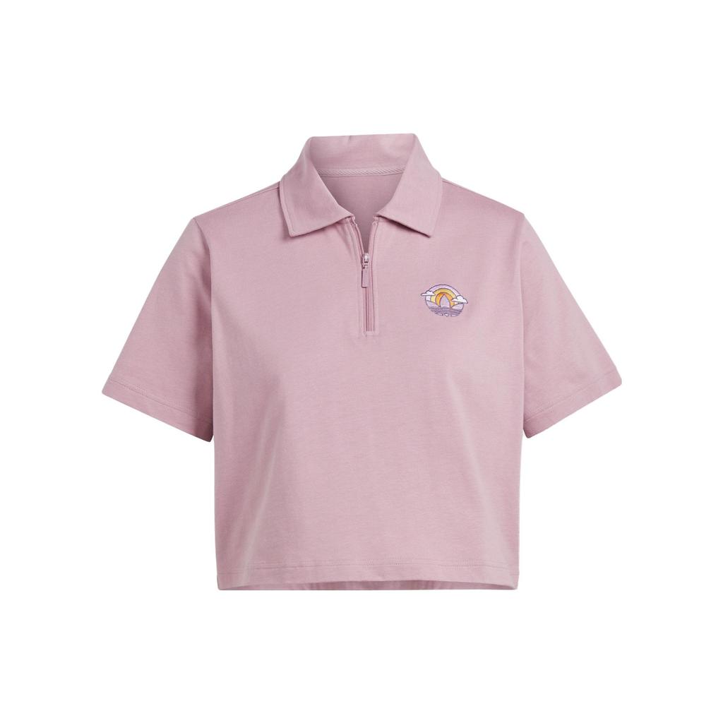 Adidas Originals Cropped Polo Shirt Cartoon Logo Embroidery Detail Sports Short Sleeve Polo Women tops Magical-Purple Pink IN4140