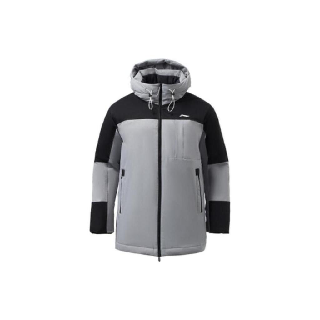 Li Ning Fitness Series Color Block Logo Print Stand Collar Zipper Down Jacket Men Outerwear Light-Gray AYMR147-3