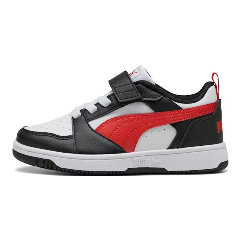 Puma Rebound V6 Low Niño Pequeño Blanco Negro Rojo Zapatillas para Niños Para-Siempre-Rojo 397419-04