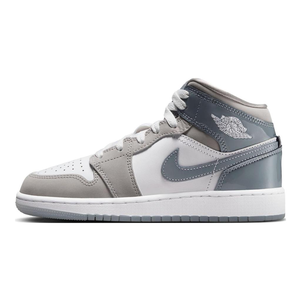 Zapatillas Air Jordan 1 Mid SE GS Patent Cool Grey para Niños Blanco Gris Medio HF3193-100