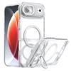 For iPhone Air Magnetic Case TPU Acrylic Clear Phone Back Cover with Lens Protector Kickstand