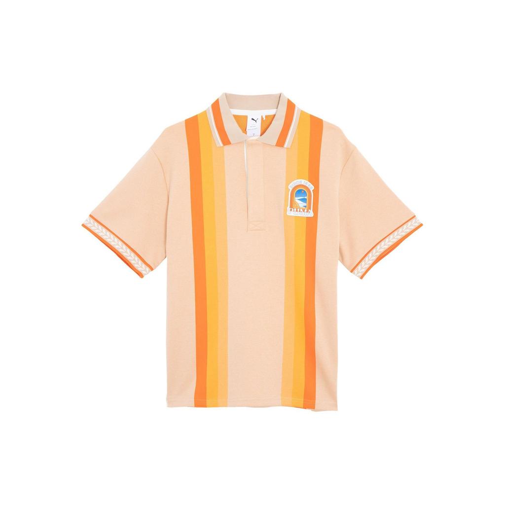 Puma Apres Court Manga Corta Estampado de Letras Bloque de Color Cómoda Suelta Camisa Polo Tops Unisex Arena Suave 628233-32