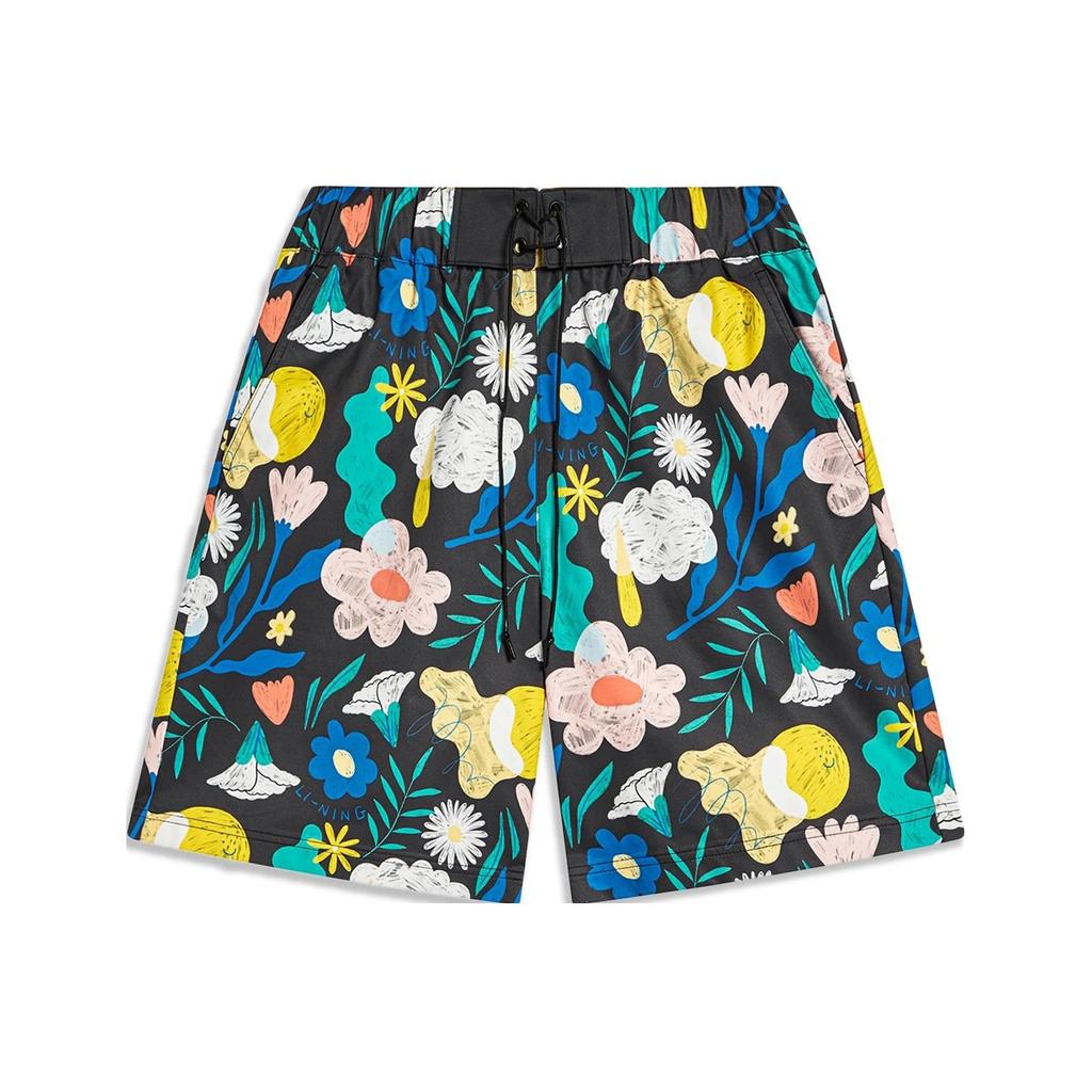 Li Ning Sports Trend Series All Over Print Mid Rise Loose Fit Sports Shorts Unisex shorts Black AKST443-1