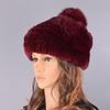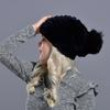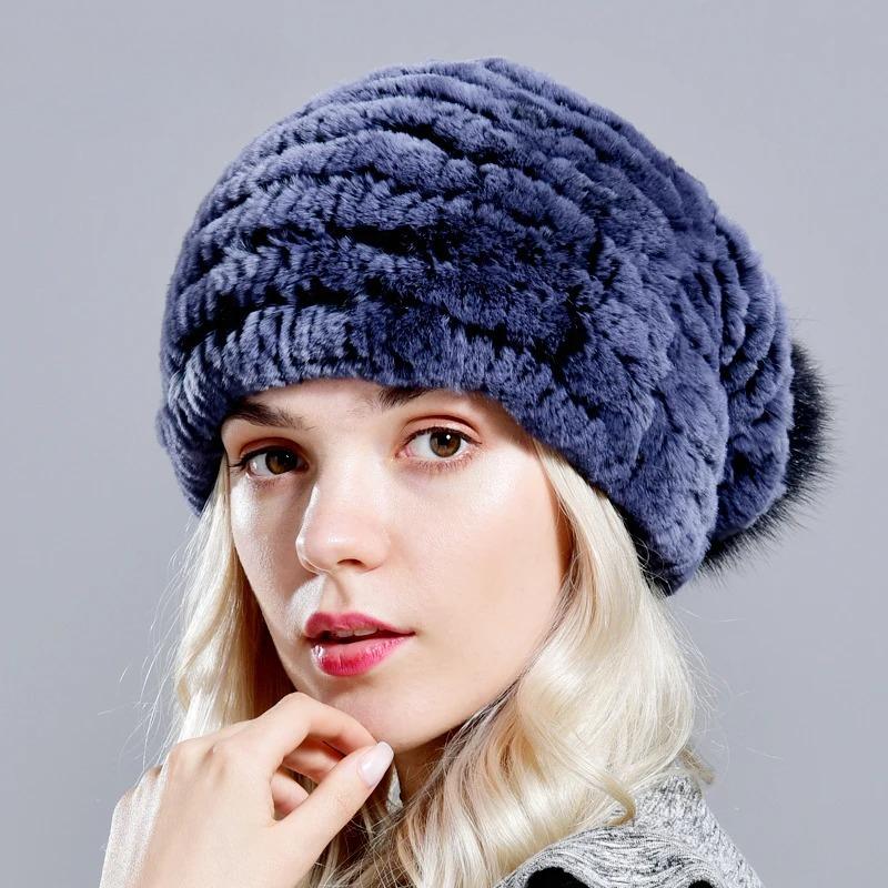 Rabbit Fur Pompom Hat Women's Beanies Winter Natural Fur Warm Knitted Caps for Girls Female Fashionable Elastic Ladies Hats
