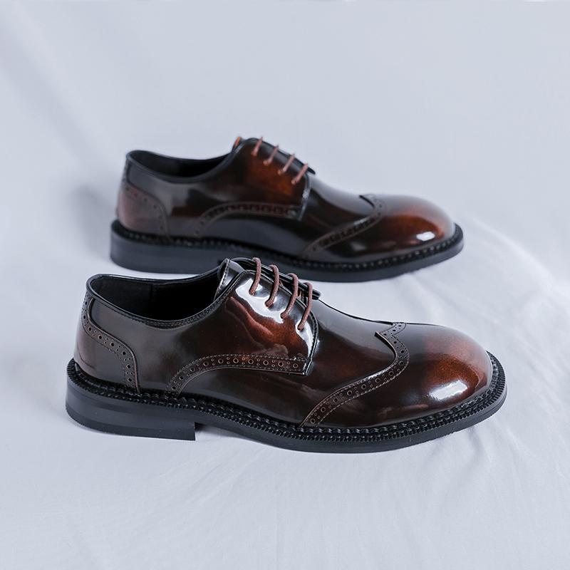 Fashion Fashion Men Casual Leather Derby Shoes Italian Thick Sole Big Toe Trendy Patent Leather Shoes Lace-up Thick Bottom Oxford Shoes