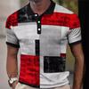 Polo Casual de Hombre con Estampado Digital 3D de Bloques de Moda