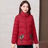 Middle-aged and Old Young Thin Cotton Jacket for Women Short Mother Autumn and Winter New Embroidered Stand-up Sewn Cotton Jacket