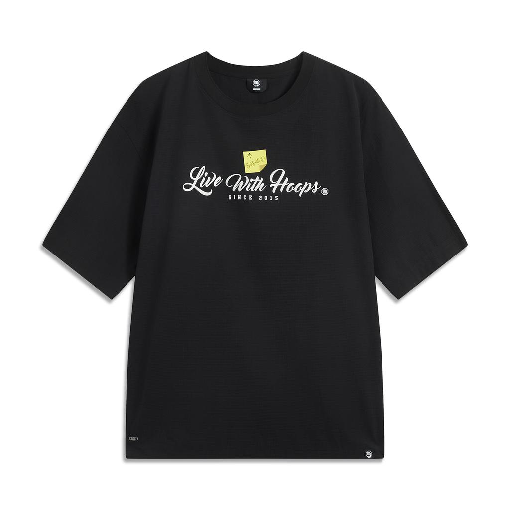 Li Ning Badfive Letter Round Neck Breathable Versatile Loose Short Sleeve T-Shirt Men Tops Black AAFV005-1
