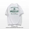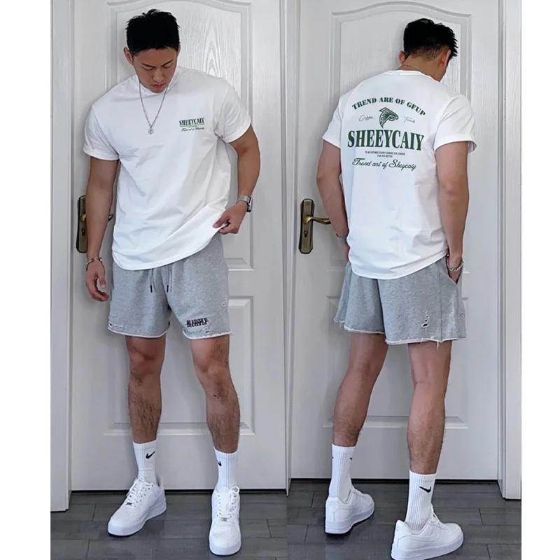 Camiseta de calle deportiva informal de alta calidad con estampado de algodón 100% con letras en inglés para hombre de peso pesado a la moda de verano