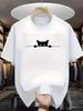 2025 Men's Summer 100_ Cotton Fashionable Casual Loose Large Cute Cat Pattern Printed Round Neck Short Sleeve T-shirt Top