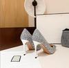 Spring new sequins sexy thin heel rhinestone square buckle dinner single shoes women's pointed head light mouth black high heels
