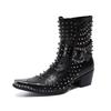 Moda Primavera y Otoño Nuevos Zapatos de Cuero de Tacón Alto para Hombre Casual de Negocios Zapatos de Cuero Negros de Tendencia para Hombre Botas de Cuero Remachadas Masculinas