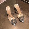 Fashion 2025 New Pointy Transparent Line With Flip-Flops Female Baotou Diamond Flower Fairy Socialite Glass High Heels