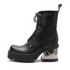 Fashion Women's Thick Soled Punk Motorcycle Boots Size 36-43 Metal Belt Buckle Sponge Shoes Front Tie Thick Heel Short Boots