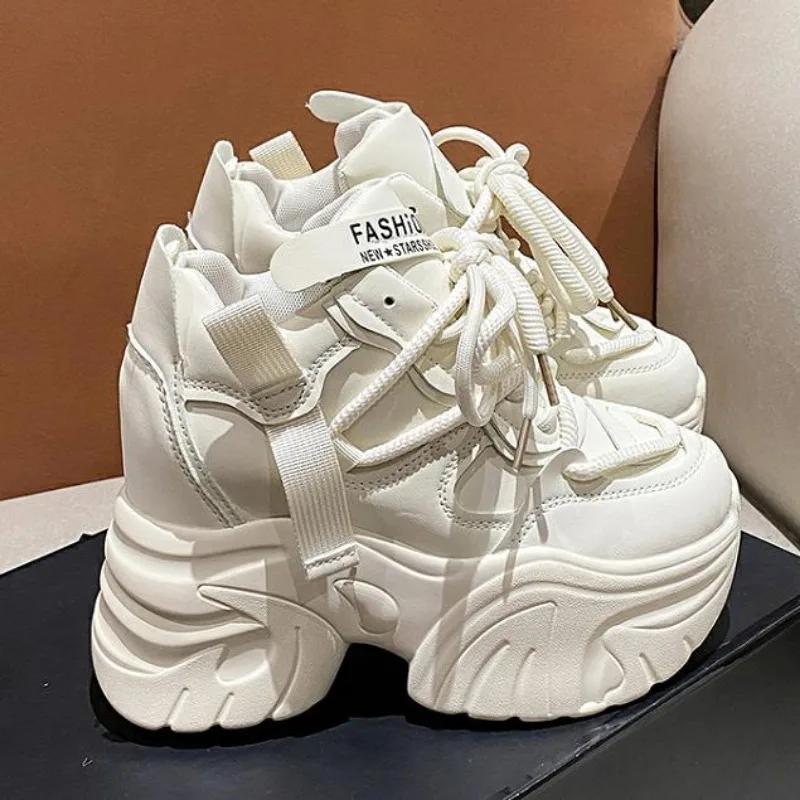 Zapatillas de Moda para Mujer para Caminar Otoño con Cordones Plataforma Alta Zapatos Gruesos Zapatos de Cuero Transpirables Tacones de Cuña de Invierno Zapatos Casuales de 10.5CM