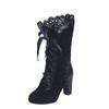 Moda Moda Botas de Media Caña 2024 Otoño Invierno Nuevo Sentido del Diseño Encaje Botas de Cuero de Tacón Alto para Mujer en Grande Zapatos Mujer