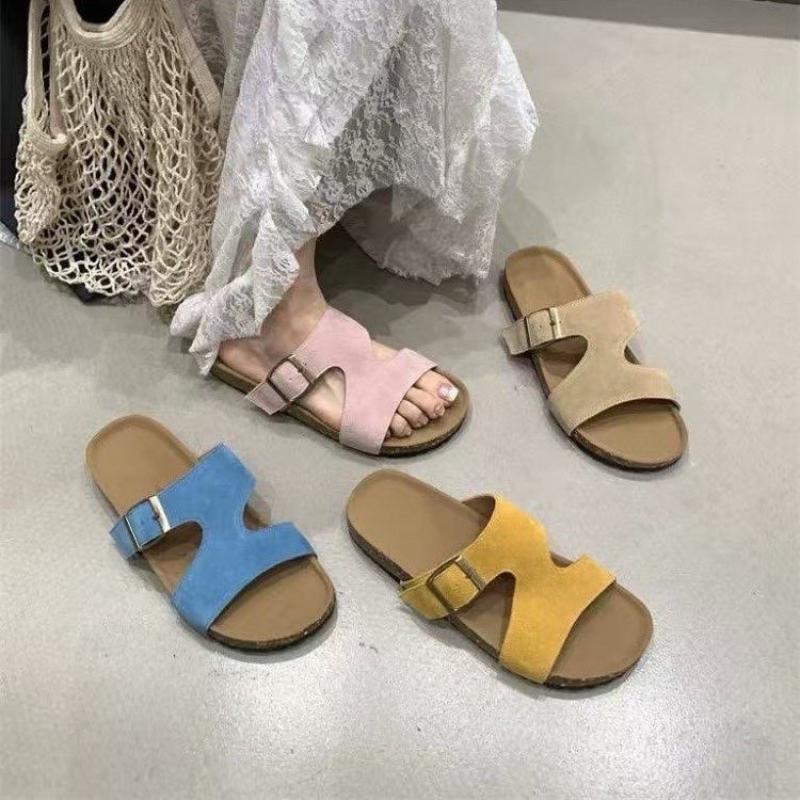Fashion Fashion Faux Suede Cork Slippers Women Summer Non Slip Beach Slides Sandals Woman Open Toe Comfort Unisex Home Shoes Plus Size