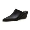 Fashion Brand New Ladies Genuine Leather Mules Fashion Med Chunky Heels Summer Wedges Slippers Women 2025 Casual Office Shoes Woman