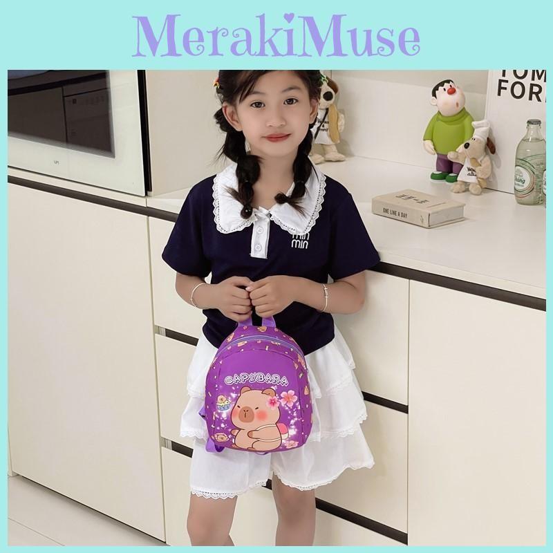 This children's backpack features a playful capybara cartoon design, crafted from durable nylon with breathable polyester lining.it supports daily kindergarten activities. Ideal for preschoolers, it can be used for school, outings, or daycare. Wipe clean with a damp cloth to maintain its vibrant appearance.