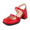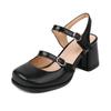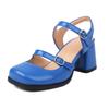 Zapatos Mary Jane Azules Blancos de Moda para Mujer Sandalias Vintage de Punta Redonda con Hebilla Banda Bombas Casuales para Mujer Tacones Altos Bajos Mocasines