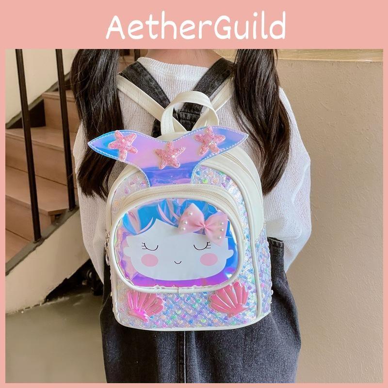 Girls Backpack Children With Shiny Shell Mermaid Tail For Use Kindergarten