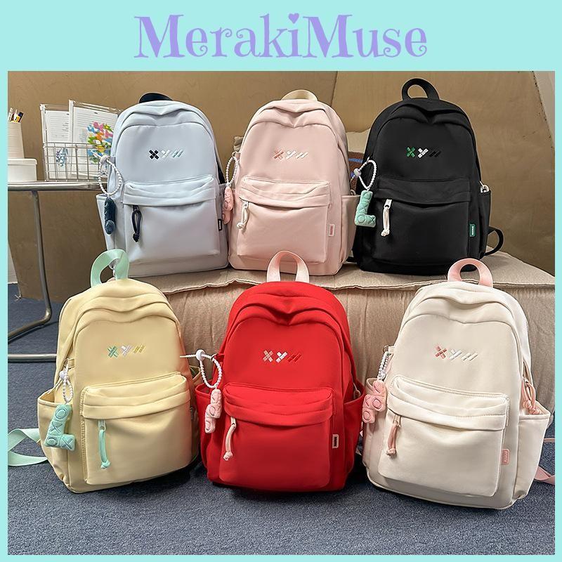 This versatile unisex backpack combines functionality and style, making it an ideal choice for students and daily commuters. Crafted from durable nylon with a polyester lining, it ensures long-lasting performance while maintaining a lightweight design. The backpack features a spacious main compartment, perfect for carrying textbooks, laptops, or personal essentials, and includes a bonus accessory charm for added flair. Its ergonomic curved shoulder straps provide comfort during extended wear, making it suitable for university students or anyone with an active lifestyle.
