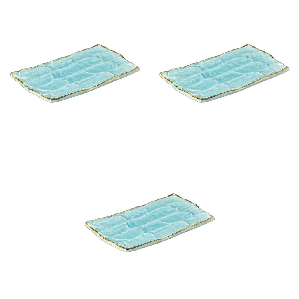 Juego de 3 Platos Rectangulares con Borde Oxidado y Bordes Tallados en Azul Marino x x Platos de Cerámica de Setomonohonpo [24.5 14.5 2.5cm]