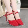 Zapatos de Baile Moderno de Moda para Mujer, Zapatos de Baile Latino con Parte Superior de Malla Flash con Lentejuelas, Suela Suave de Ante y Tacones Altos Zapatos Negros