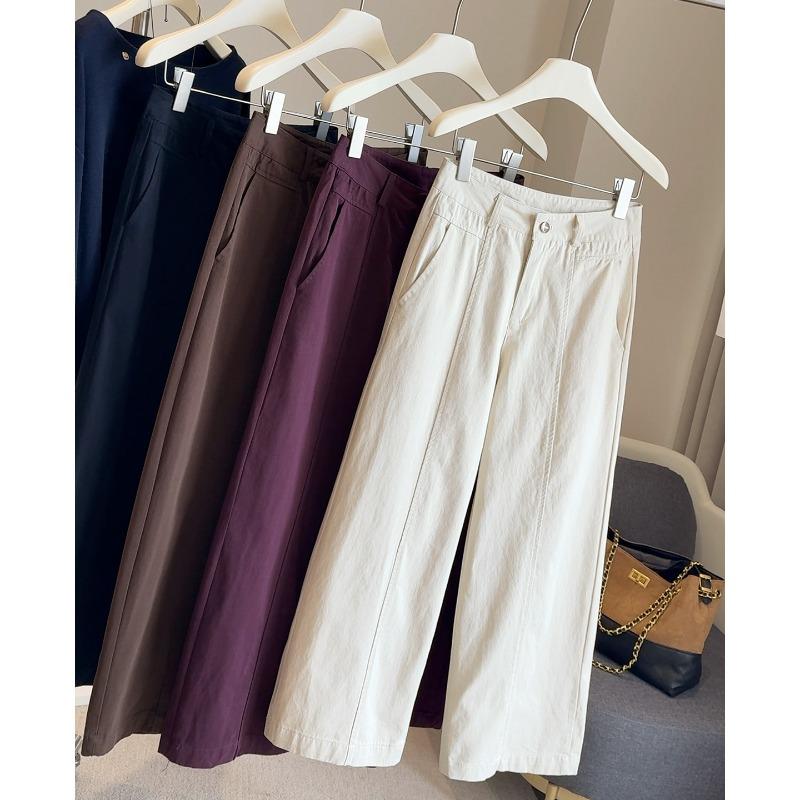 Small washed cotton casual pants women's high waist and thin autumn new narrow version drape wide leg straight pants