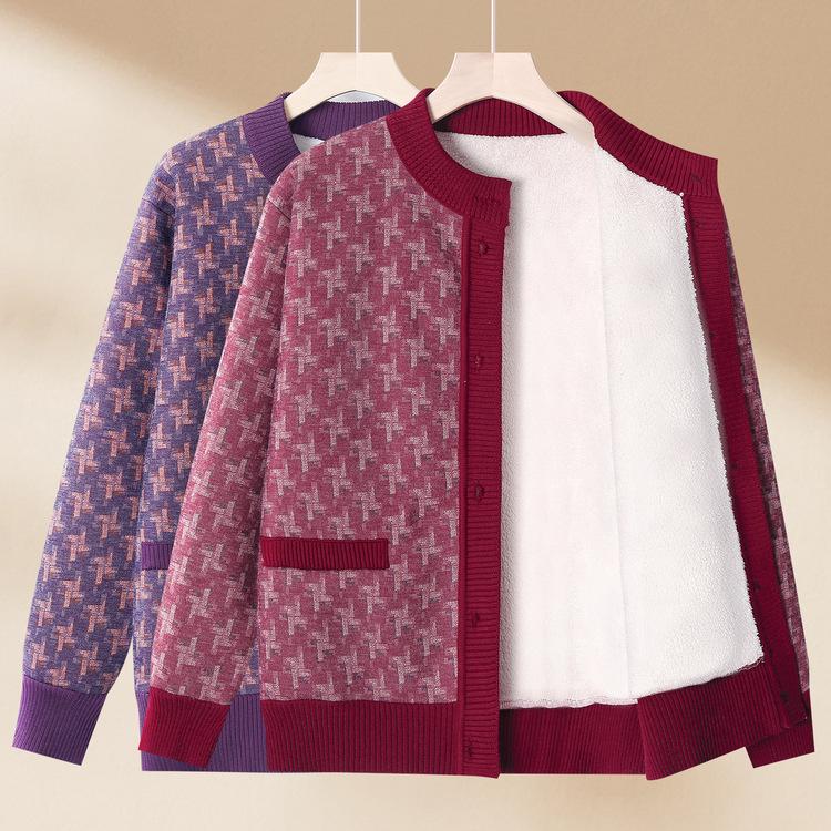 Suéter de Invierno para Mamá Cárdigan para Mujeres de Mediana Edad y Ancianas Tops de Invierno Abuelo Abuela Bolsillo Suéter Casual de Moda