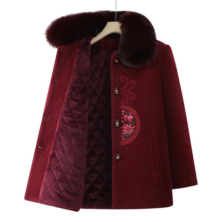 Abrigo de Lana de Visón Espesado con Terciopelo Invierno de la Abuela Nuevo Estilo Abrigo de Algodón para Madre Abrigo de Otoño e Invierno para Mediana Edad y Ancianos