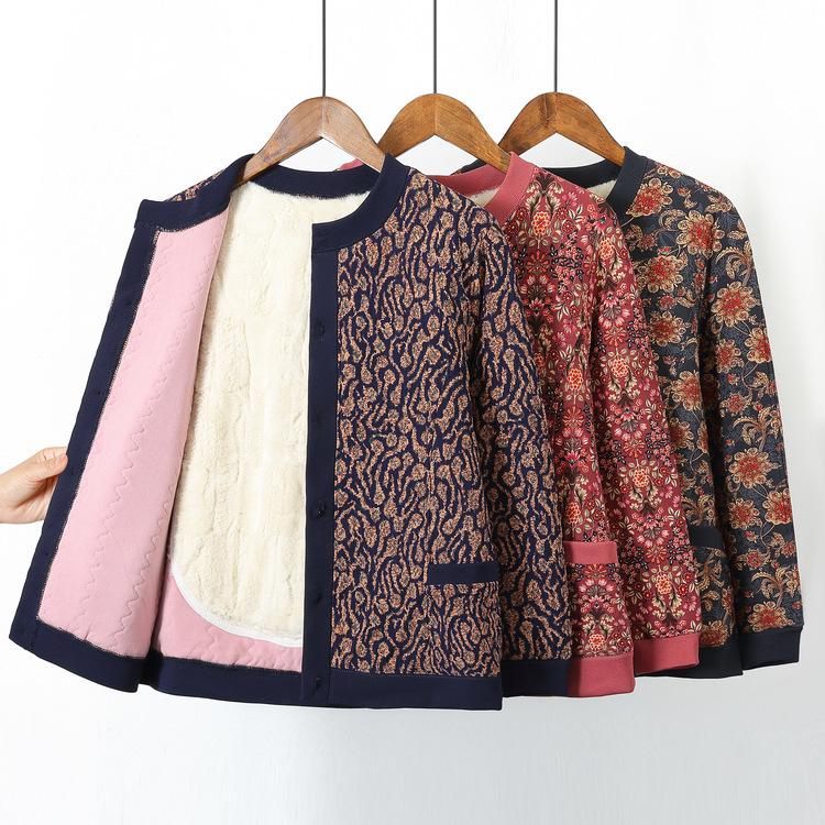 Abrigo de Algodón para Mujeres de Mediana Edad y Ancianas con Terciopelo Cálido Chaqueta de Algodón Floral para Madre para Invierno Nuevo Cárdigan Base Chaqueta de Algodón Floral Pequeño