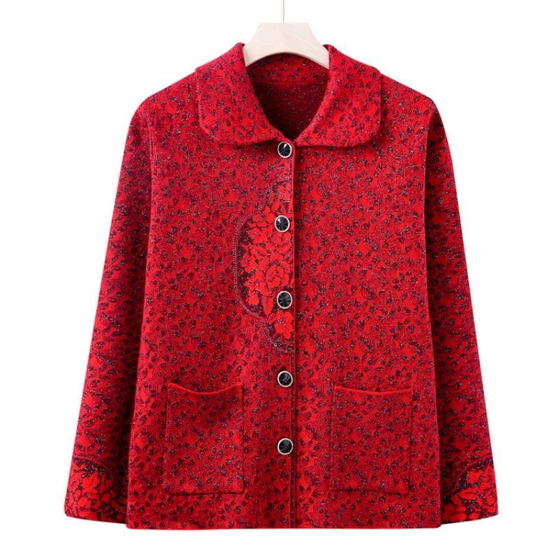 Middle-aged spring and autumn women's coat mother's new retro top grandma autumn knitted sweater cardigan