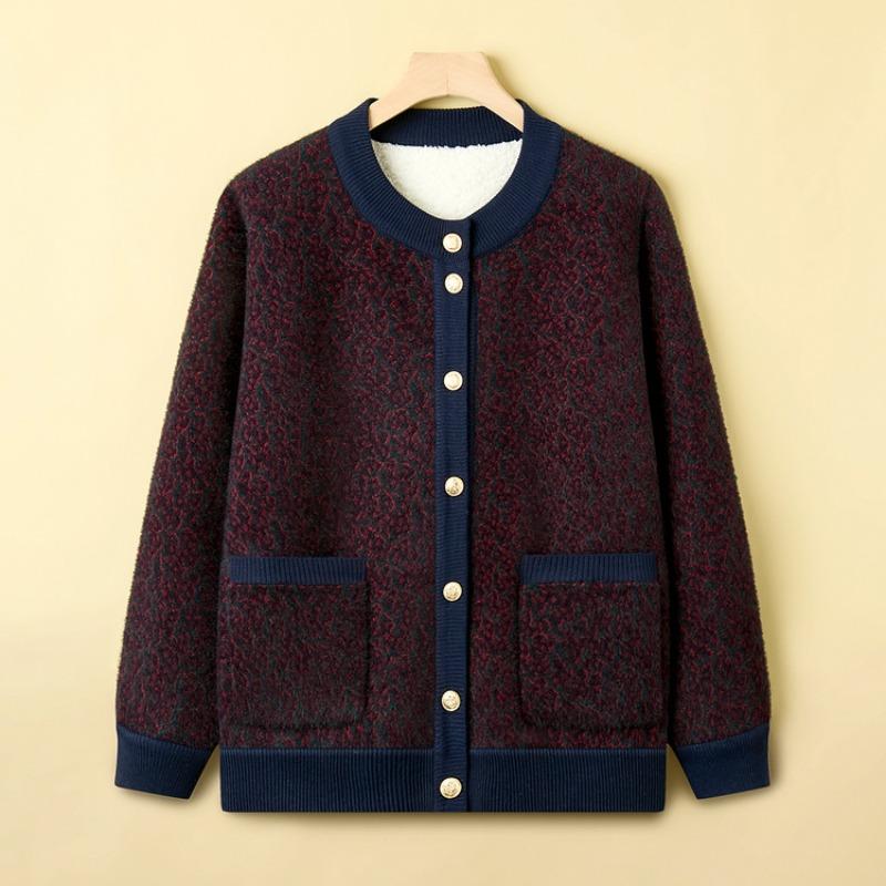 Mom fleece thickened sweater medium fashion cardigan top women's autumn and winter fashion knitted jacket