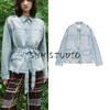 Spring New Women's Clothing French Pleated Design Shoelace Denim Long Sleeves Retro Lapels Shirt 8197061