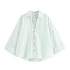 Kaslead New Arrival Women's Clothing Fashion Style Fashion Blended Linen Wide Sleeve V-neck Shirt 8741854