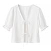 Kaslead New Arrival Women's Fashion Style Fashion Minimalist Pure Color Casual All-Match Short-Sleeved Shoelace Shirt