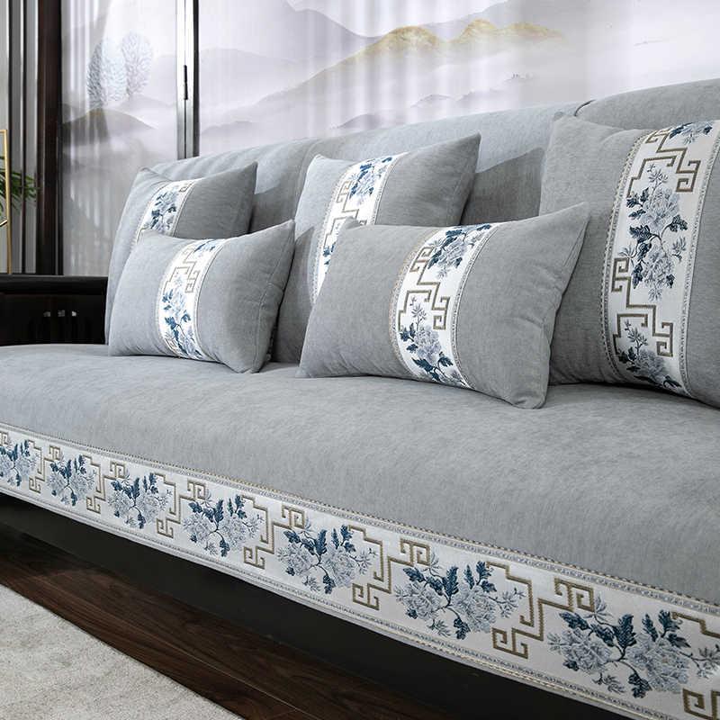 Funda de Sofá Universal Antideslizante de Chenilla para Todas las Estaciones - Cojín de Madera Maciza de Alta Gama y Madera de Rosa
