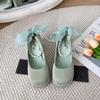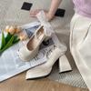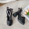 Retro pearl bow Mary Jane shoes women's 2025 spring and autumn new thick heel sweet high heels thick heel single shoes women
