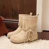 Fashion tassel bow thick heel short boots women's 2025 autumn and winter retro style new suede temperament versatile fashion boots