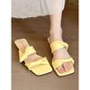 Flat bottom versatile one-word slippers outer wear women's shoes new summer beach square head open-toed sandals
