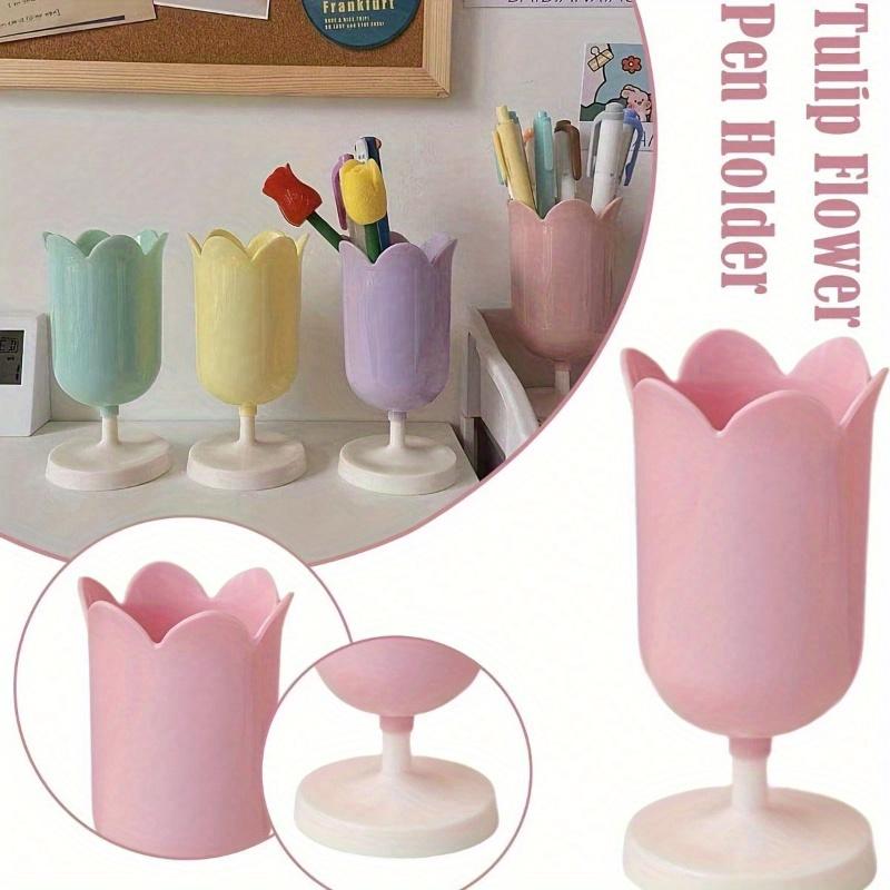 Tulip Shaped Plastic Pen Holder - Office Desk Organizer for Pens, Cosmetics and Stationery Back To School