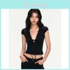 WEGO PHILLY Short Sleeve Compact Size Black T-Shirt, Lace-Up Top, Girly, Casual, Spring/Summer Clothes, Women's, F,