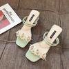 Summer sandals girl 2025 new fairy wind wear fashion flower high heel word two wear thick heel cool slippers