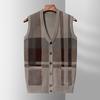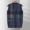 Cárdigan Chaleco de Lana con Cuello en V para Hombre Suéter Chaleco de Bloques de Color Casual sin Mangas Tejido Chaqueta con Clip de Caballo