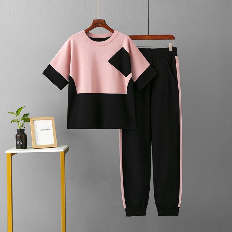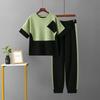 Fashion casual suit women's summer new color matching loose ice silk short sleeve two-piece set