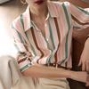 Blusas y camisas de cuello tipo polo de manga larga con estampado de rayas informales de moda para mujer para primavera y otoño