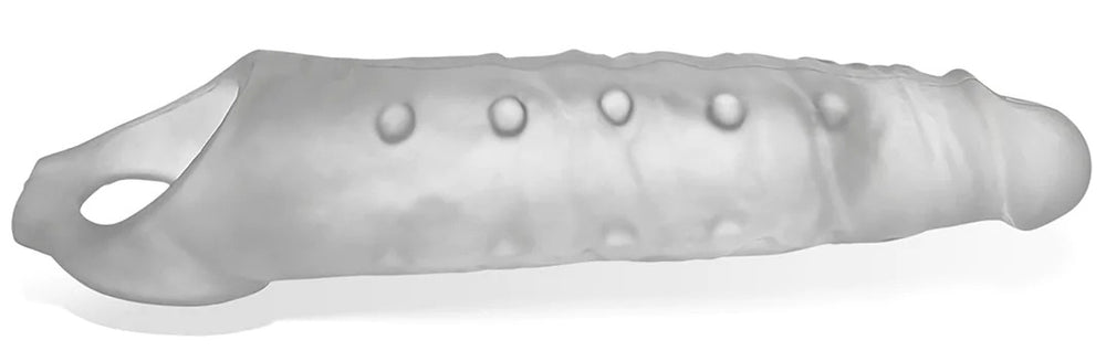 Gaine de pénis transparente avec une longueur de pénétration de 21 cm. La largeur extérieure est de 5.5 cm.Les dimensions intérieures sont de 16 x 3.5 cm. Avec une surface intérieure perlée. En matière Silicone + TPRPrécautions d'utilisation : La nettoyer avant et après l'utilisation Utiliser uniquement du lubrifiant à base d'eau La conserver dans un endroit propre, sec et à l'abri de la chaleur, sans contact avec un autre objet.